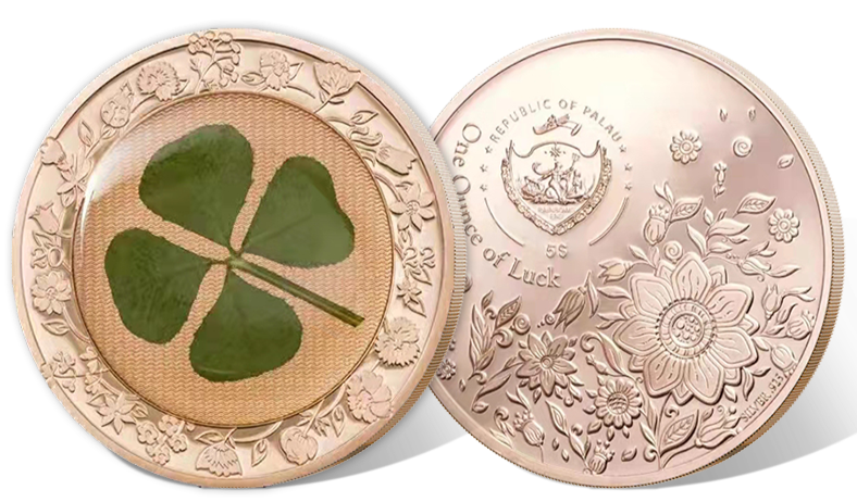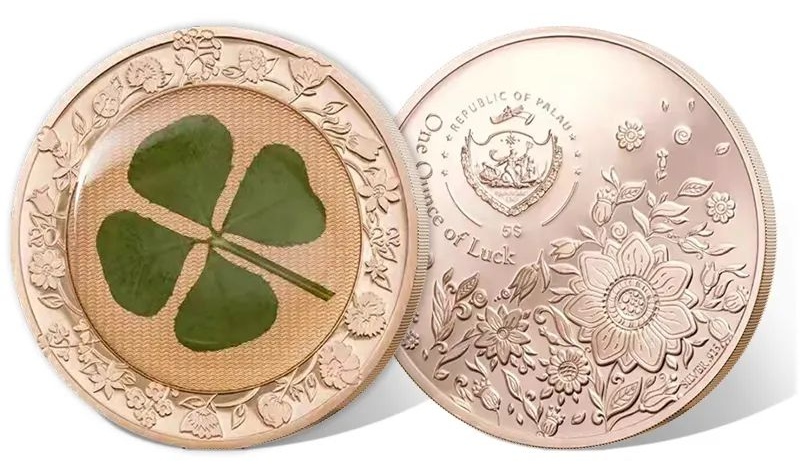 四叶草系列是帕劳的经典系列,这也是世界上初次尝试把干花放在钱币上的纪念币。