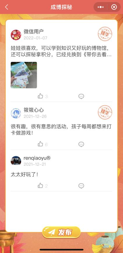 新圈子:“成博探秘”丰富了社交功能,有了“个人中心”和“探秘交流圈”。在这里,观众们可以查看自己的通关记录、积分明细、兑奖明细,可以和大家一起分享通关成功的喜悦,也可以和其他探秘伙伴们一起交流学习。爱自然的小伙伴们,有了自己的“朋友圈”。你甚至可以约上跟你志同道合的朋友们,一起来参加线下活动,有了朋友就不再孤单啦!