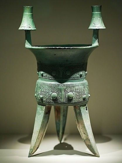 商 青铜斝 高46.5厘米,口径22.2厘米,1957年安徽省阜南县出土,现藏国家博物馆