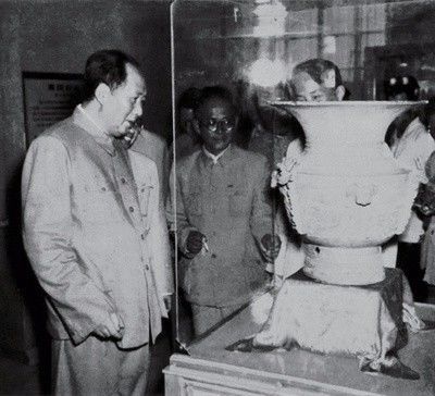 1958年9月17日下午,毛泽东主席亲临安徽博物馆视察,兴致勃勃地参观了古代文物展览,其中对一批安徽阜阳出土的古代青铜器很感兴趣,展厅中心位置的独立展柜中,陈列着一件体形高大的商代龙虎尊,铸工之精几乎让在场所有文物都黯然失色。在这件青铜器面前,毛泽东转了一圈看了个清楚,露出了微笑,高兴地说:“中国青铜器是我国古代劳动人民的创造。……人民认识自己的历史和创造的力量,是一件很要紧的事。”