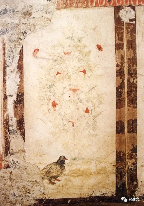 前室西壁花鸟屏风画 图片采自《五代王处直墓》