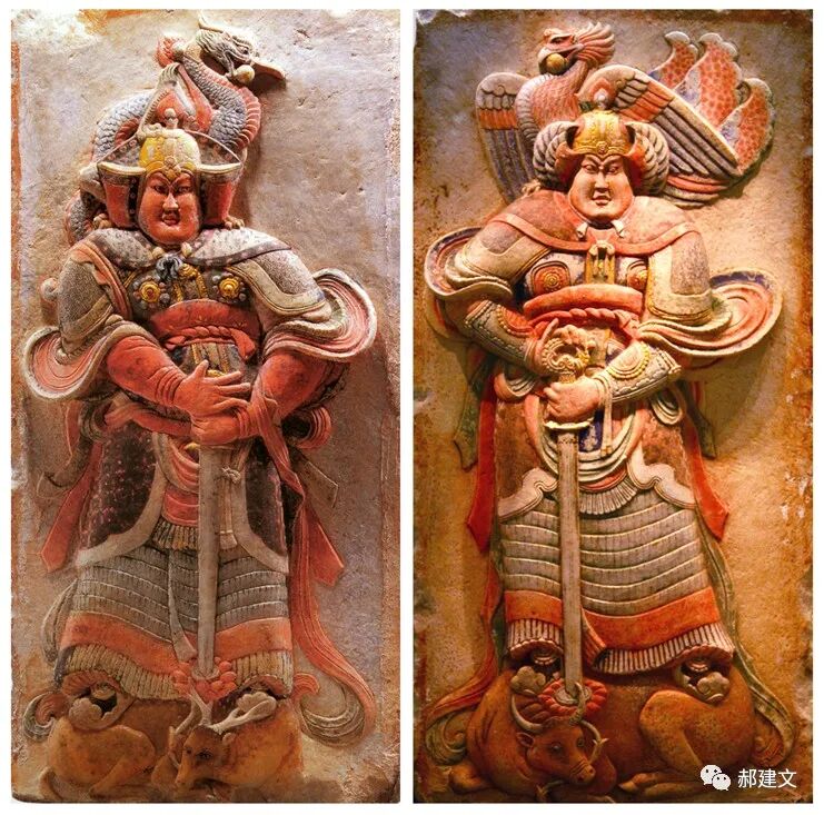 彩绘武士浮雕(左侧图像来自网络,右侧图像为笔者拍摄)