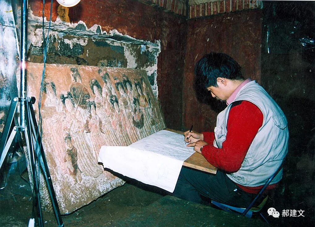 我在侍奉浮雕前绘制线图 冯林拍摄