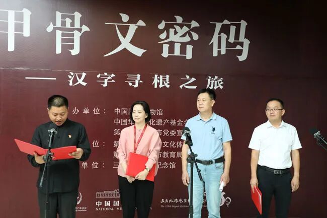 近日,在全国第24届”普通话推广周”之际,由中国国家博物馆社会教育部策划的“甲骨文密码——汉字寻根之旅”流动展览,在新疆维吾尔自治区第一师阿拉尔市三五九旅屯垦纪念馆顺利开幕。本次展览由中国国家博物馆、中国华夏文化遗产基金会、第一师阿拉尔市党委宣传部共同主办,第一师阿拉尔市文化体育广电和旅游局、第一师阿拉尔市教育局协办。第一师阿拉尔市文化体育广电和旅游局副局长王瑞华、教育局副处级督学杨志敏、中国华夏文化遗产基金会秘书长蔡宝光、中国国家博物馆社会教育部主任胡健等参加了开幕式。