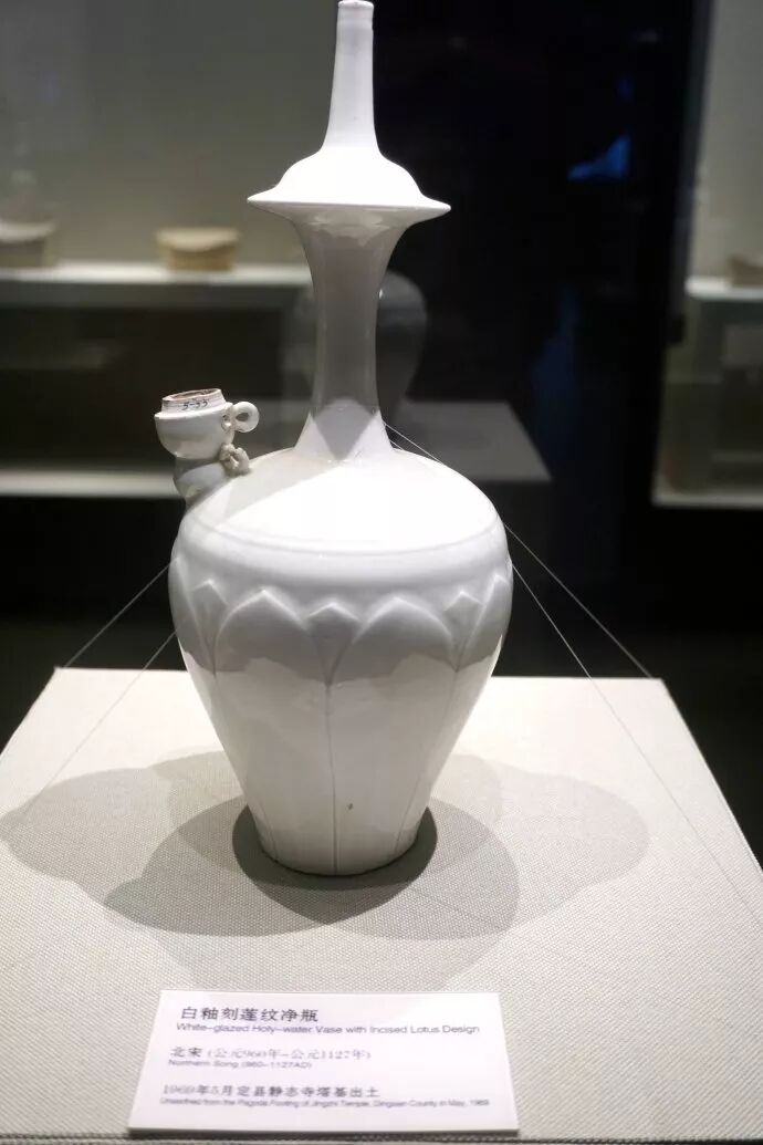 河北定州博物馆,原来在定州文庙内,成立于1959年10月,2017年迁到在定州市中山路南侧。河北定州博物馆规模宏大,是一座综合性博物馆。馆内藏品丰富,有不少珍贵文物,且具有浓厚的地方色彩和时代特性。天下大白展出中国五大名窑之一的定窑磁品,展示了“定窑花磁瓯,颜色天下白”的美誉。