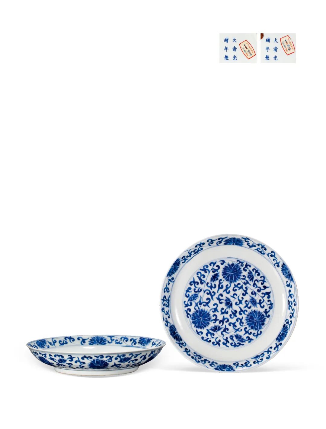清·大清光绪年制款青花缠枝莲纹盘一对