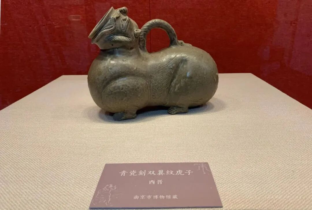 青瓷刻双翼纹虎子