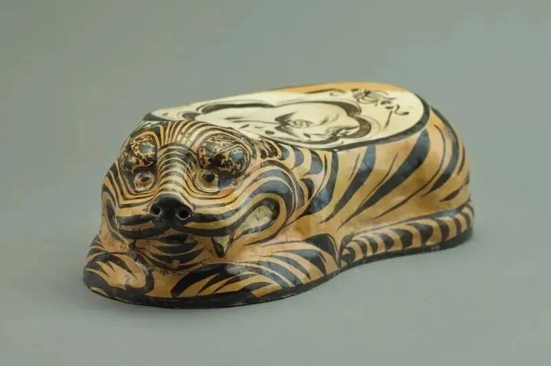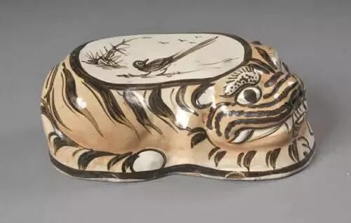 金代黄地黑彩雁衔芦苇纹虎枕