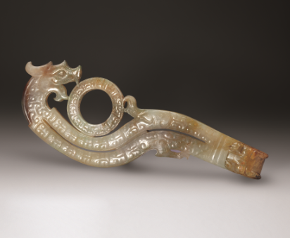 钩首是虎头,钩尾为龙头