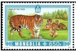 2022年1月3日,蒙古国邮政发行“虎年”邮票一套2枚。图案为群虎。