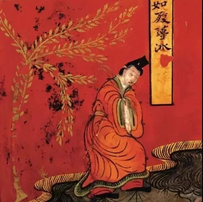 它其实是一幅带有政论意义的劝诫画,嫩枝披拂,水波四漾,都是用来渲染危险。《诗·小雅·小旻》“不敢暴虎,不敢冯河。人知其一,莫知其它。战战兢兢,如临深渊,如履薄冰”,即此图画之取意。临深履薄原是传统题材的寓意画,此前早有名笔,如出自戴逵的一幅,曾经顾恺之品题,曰“兢战之形,异佳有裁”。