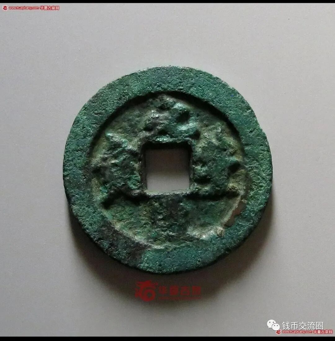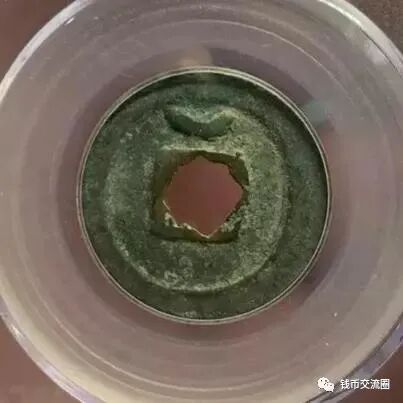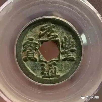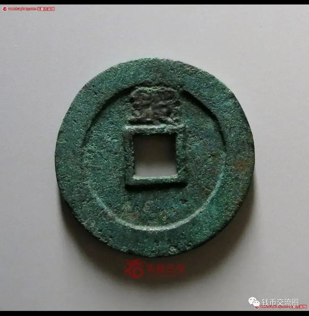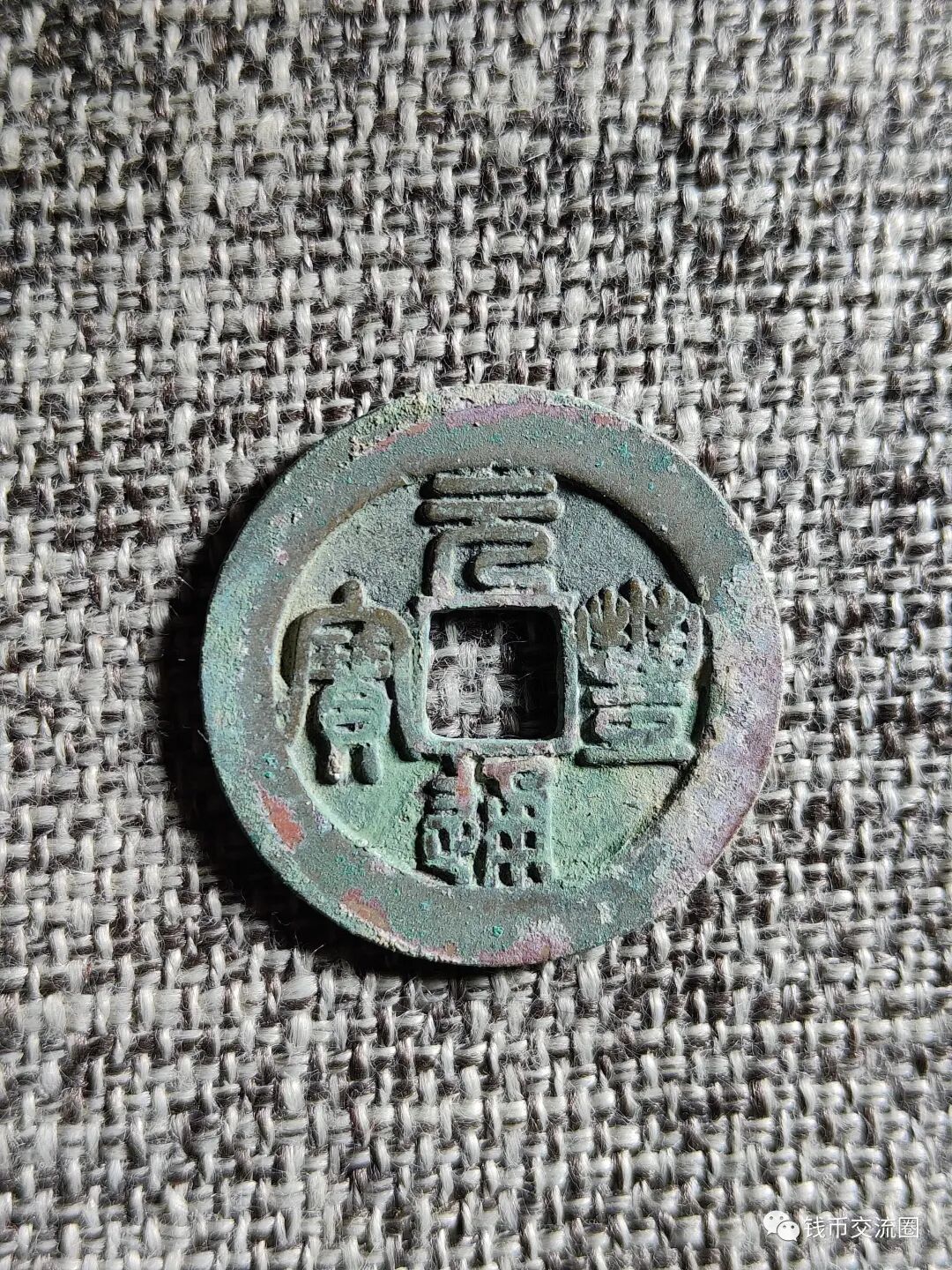 下边这枚也是比较少的版别,元丰通宝小平大字背仰月和背俯月