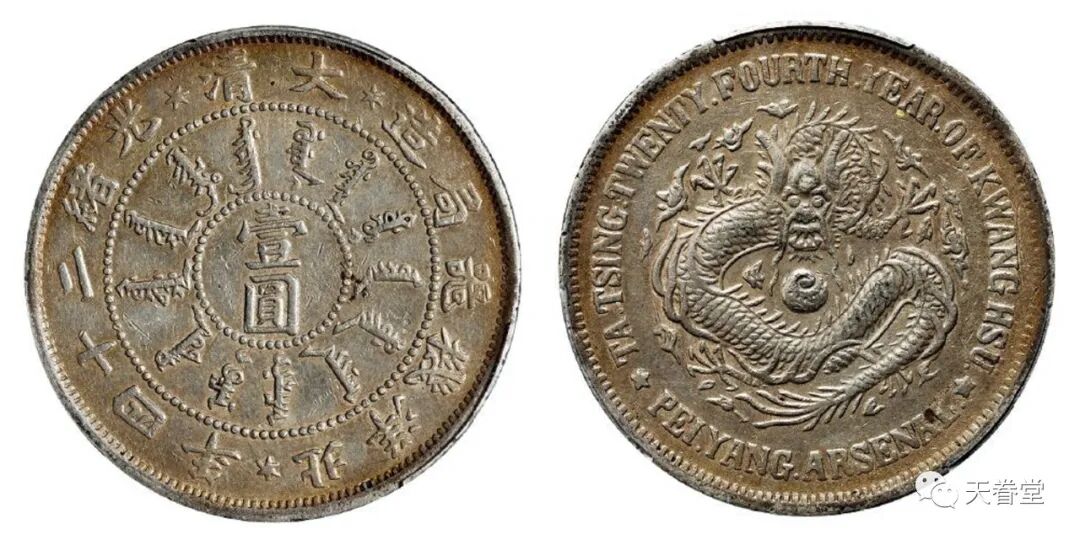 光绪二十四年北洋机器局造壹圆银币,竖点云版,PCGS XF45 北京诚轩178250元