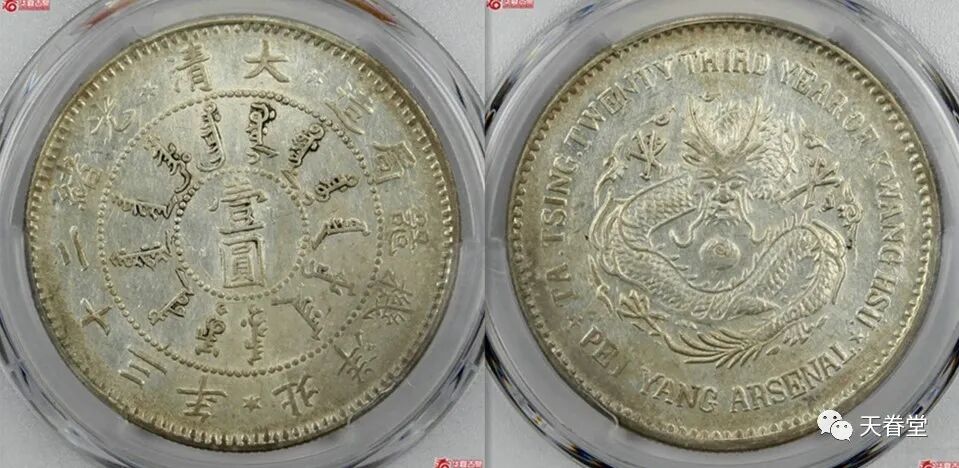 大清北洋机器局23年壹圆PCGS AU55华夏古泉281600元