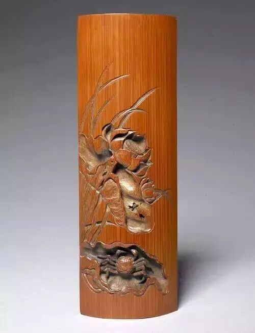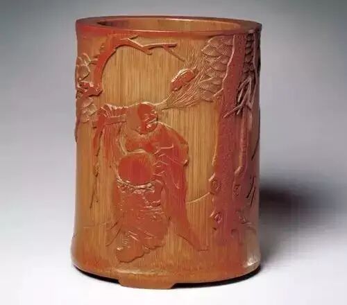 吴之璠,字鲁珍,是清初著名竹刻家,此笔筒所用“薄地阳文”浅浮雕法,史家以为是其所创。(刘岳)
