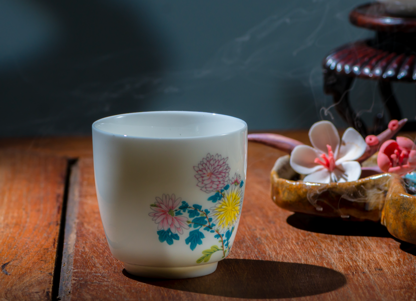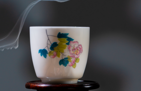 花在杯上绽放,人在花间烹茶。