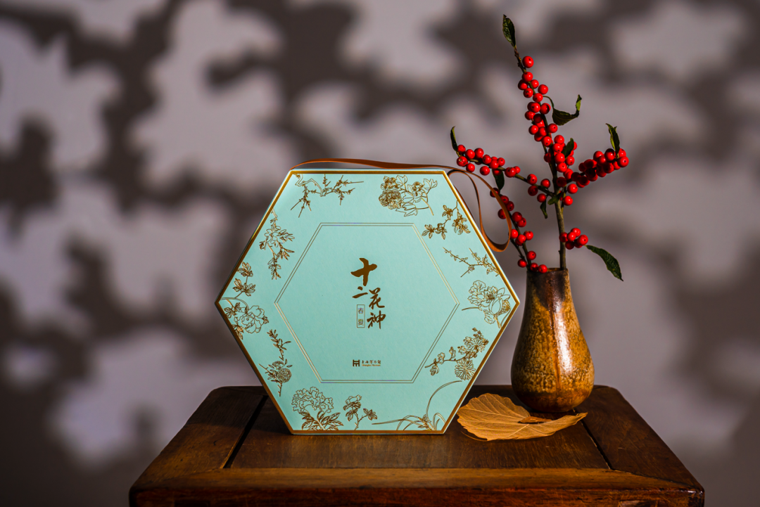 上博文创将明代名家周之冕的《群芳竞秀图》《画鸟册》中十二个月的花卉提取出来,以现代科技工艺复原名作神韵。做成这款文创——十二花神杯。