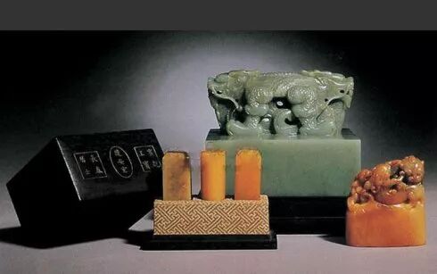 乾隆印玺不仅在数量上,使历代帝王无人可及;在质地上,同样多种多样,有铜、玉、石、水晶、玛瑙、象牙等。但乾隆爱玉如命,所以玉玺最多,包括碧玉、青白玉、青玉、墨玉、汉玉等。因为英法联军、八国联军进北京抢夺,晚清时期从宫内流出等原因,目前流失到世界各地的乾隆印玺也很多。2003年香港苏富比秋拍2918万港元拍出了“清乾隆御帝组玺”五件