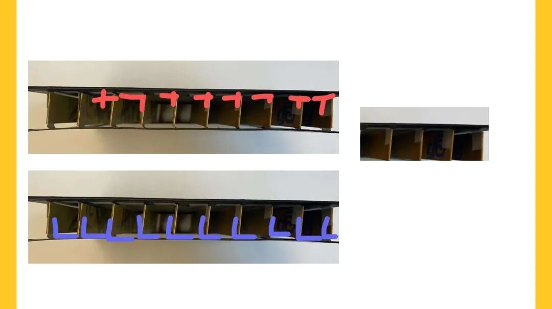从上往下看,每条画面和相框之间应该出现一个“Z”,角度都为90度。