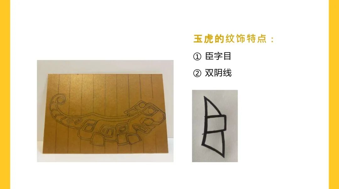 画好玉虎的轮廓后,在小玉虎身上增添纹饰,让小玉虎穿上漂亮的纹样衣服哦。注意: