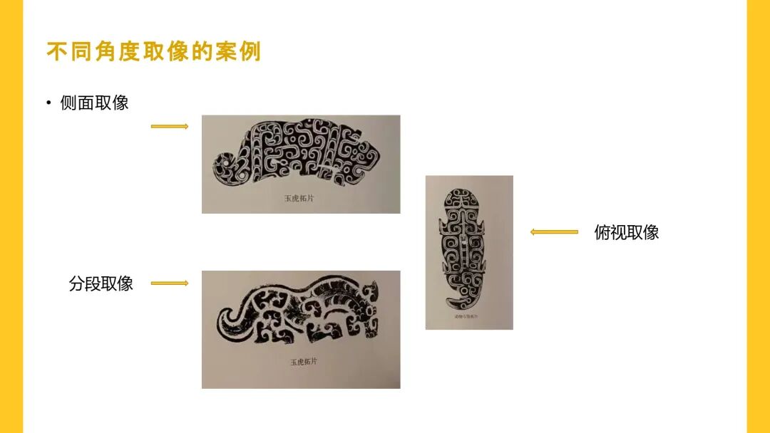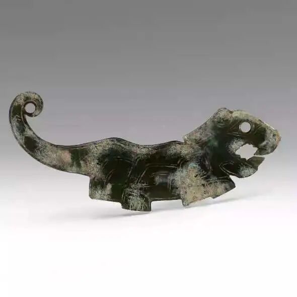 ⑤商代玉虎设计具有不同的角度取像,此类片状虎形佩为侧面取像,(方形玉料为正面取像;柱形玉料为正侧面共用),充分呈造型设计与玉料形状相互对应的关系。