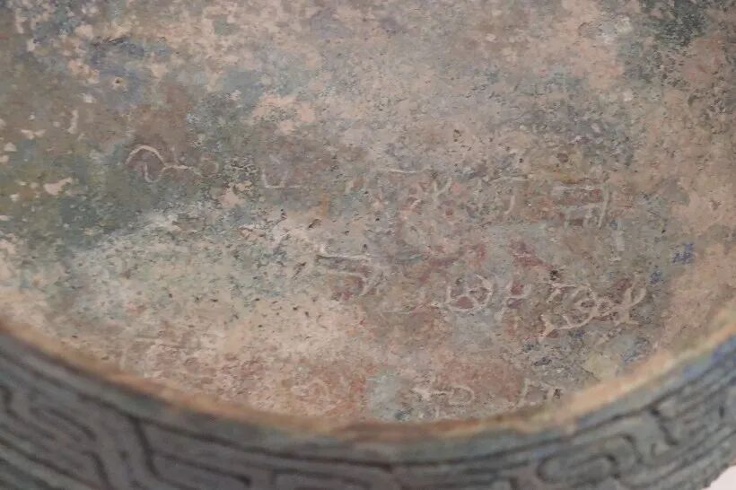 此次展览以青铜器为载体,铭文内容作经纬,因此铭文也是展览的重要看点之一。而青铜器的铭文一般会出现在几个特定的位置上,如器物的内壁近口沿处、器物内壁底部、器物的口沿上或鋬(即把手)下等。