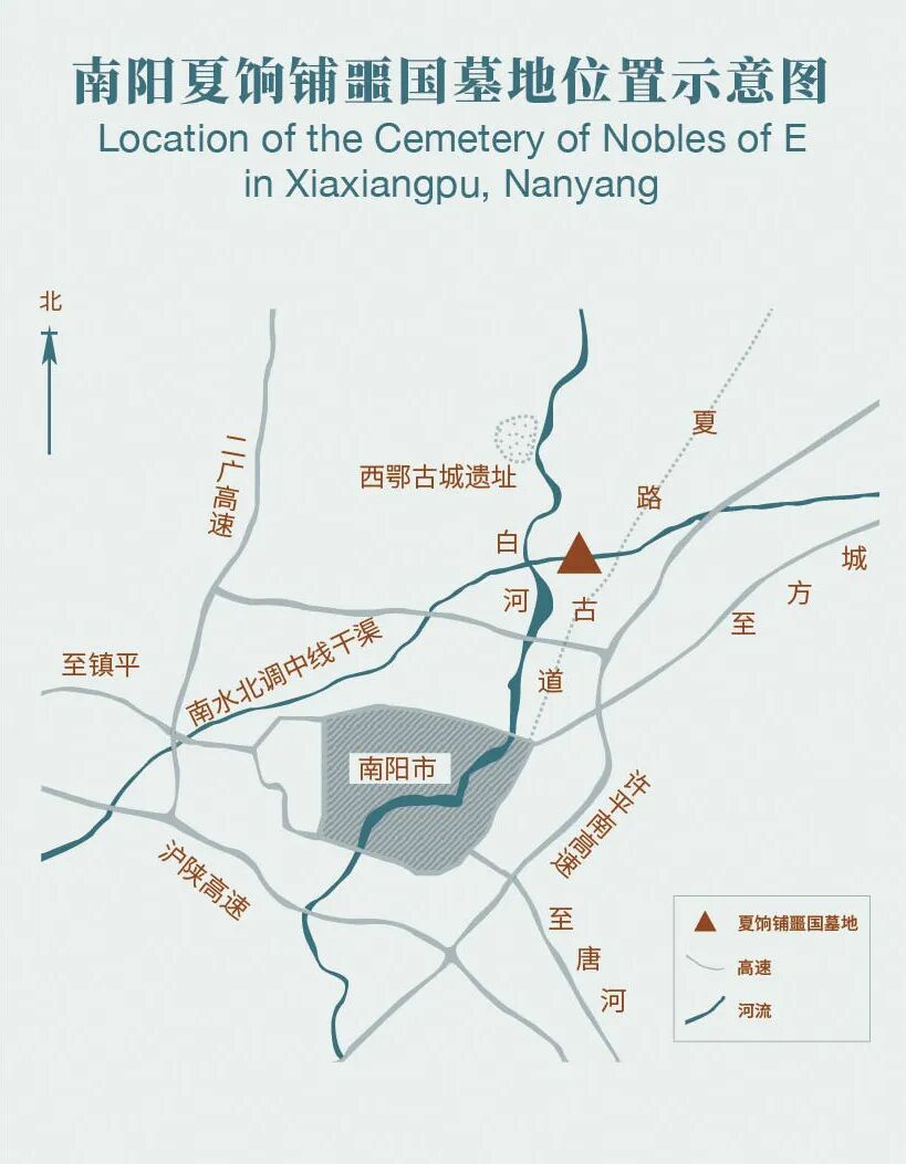 令人意想不到的是,2007年,因犯罪分子盗掘未遂,考古工作者在湖北随州羊子山抢救发掘了一座西周早期的噩国墓葬,一段被历史长河吞噬了3000年的噩国历史就这样忽然重新展现在了人们面前。我们这一代人的幸运还不止于此。在那之后,仅仅过了5年,2012年,因南水北调工程,考古工作者又在河南南阳夏饷铺发现了一处西周晚期至春秋早期的噩国墓地,有关噩国地理位置与历史发展等长期令人困扰的问题一下迎来了新的线索。