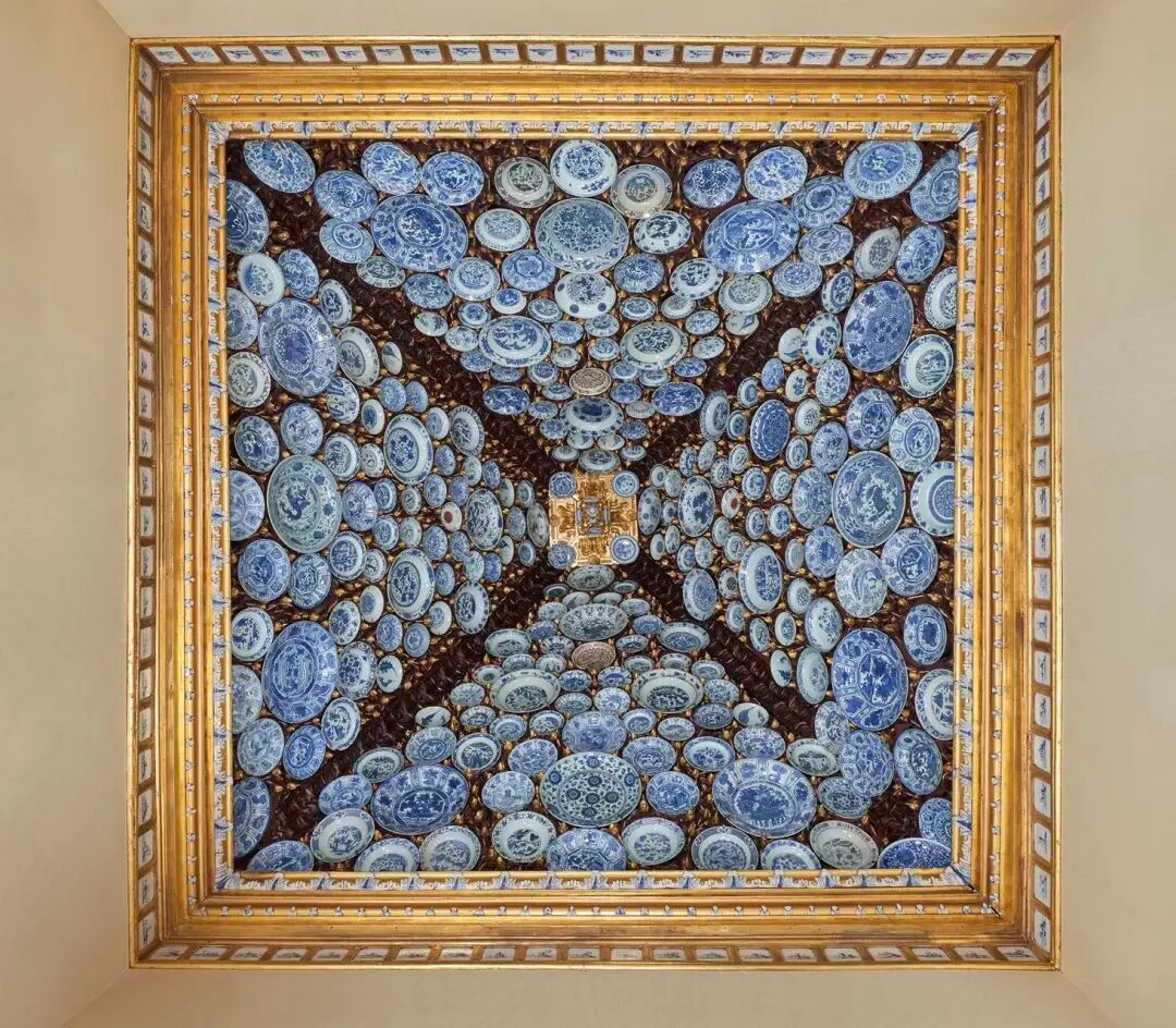 随着东方物品不断融入欧洲的室内装饰,诞生了许多瓷器宫室,葡萄牙桑托斯宫瓷厅是其中最引人注目的一例,金字塔形的天花板上镶嵌了近300件中国瓷器,宛若点点星辰,映照出巴洛克艺术的创新与融合之美。展览以最新3D技术在展厅内复原瓷厅穹顶,观者可以身临其境地感受这一令人叹为观止的瓷器景观。