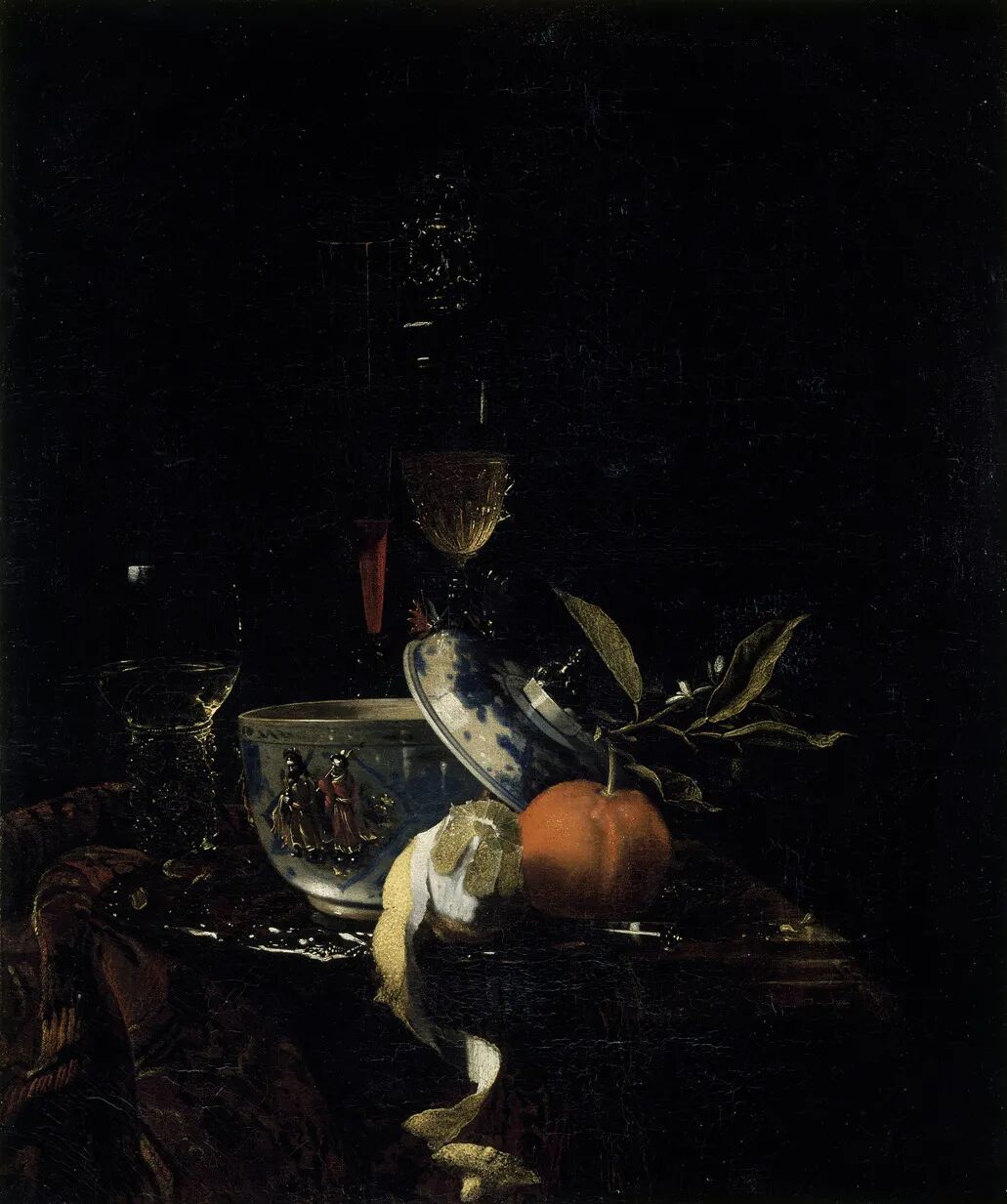 卡尔夫油画中的青花盖碗,与这件八仙盖碗如出一辙。