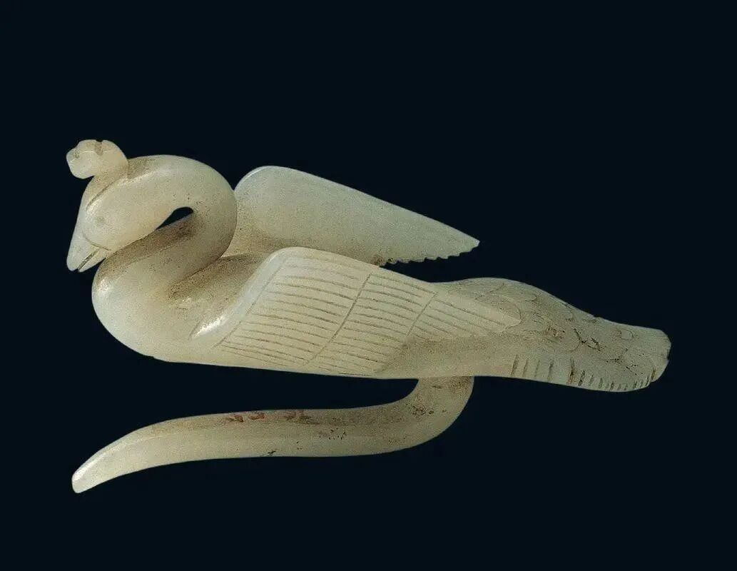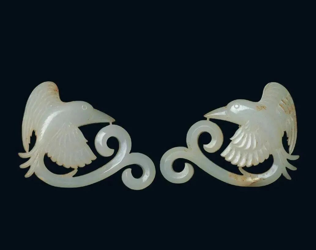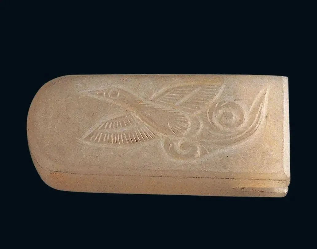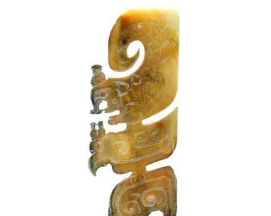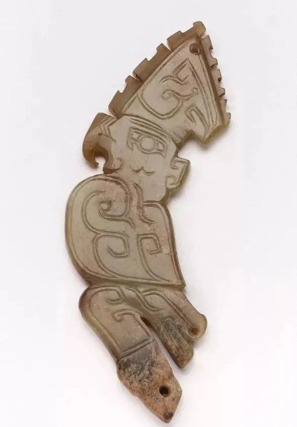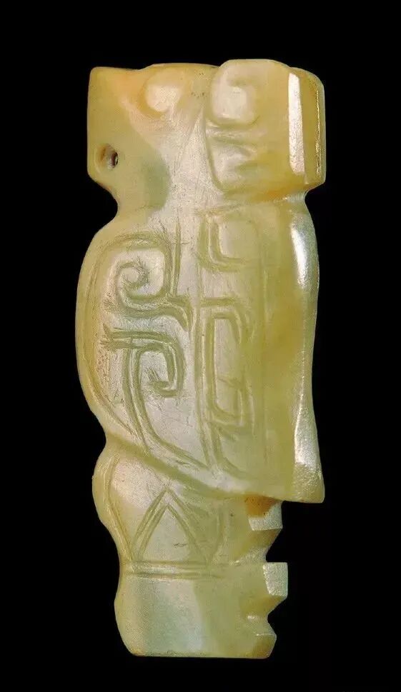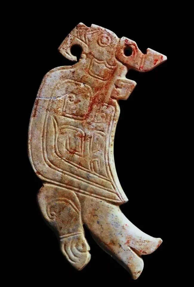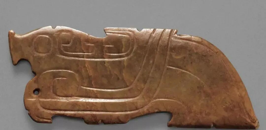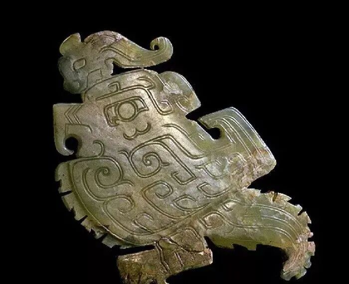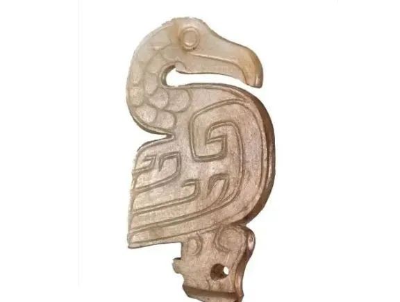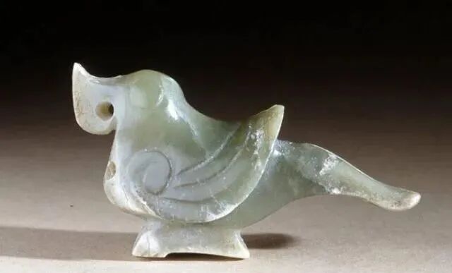 良渚人生活在我国江南地区,可能是“羽人”的后代,他们的部落标徽神人兽面纹中神人头戴羽冠就是一个证据。江南地区靠近东海,在古代神话传说中,东海是鸟的国度,有“人面鸟身”之神,与这个神话传说有密切关联的良渚人,正是崇拜鸟的民族。在良渚文化骨器和玉器中,鸟的形象频频出现,有鸟形立体圆雕,也有雕刻在器物上的鸟纹。良渚人的鸟崇拜主要表现在两个方面:一方面他们认为鸟是负载太阳每日东升西落的“飞船”;另一方面他们认为鸟是天地间的信使,是人类与神灵沟通的媒介。在浙江余杭反山、瑶山的两处良渚文化遗址中,共出土了五件圆雕的玉鸟,这些玉鸟均为扁平器,无凶猛之感,在鸟的腹部均钻有牛鼻状隧孔。其它遗址也出土了类似的器物,其中一件尖喙短尾,呈展翅飞翔状,鸟背中间雕刻有一个鼓状凸起的圆形图案。毫无疑问,这个圆形图案就是太阳的象征。这件玉鸟的出现表明,良渚人是认为太阳的运行是靠鸟的飞翔而实现的。古代先民对鸟的这种认识在文字记载中也有,《山海经·大荒东经》说:“汤谷上有扶木,一日方至,一日方出,皆载于鸟。”意思是说,大荒之中有个山谷叫汤谷,汤谷上有棵树叫扶木,一个太阳刚刚返回,另一个太阳便立即出去,都是由三足鸟驮着。三足鸟为何物?我们现在见到的鸟类只有两足,古人则认为还有一种三足神鸟,其职责就是背负太阳运行。良渚文化出土器物的鸟纹一般都作为辅助纹饰出现,它经常和神人兽面纹组合在一起,一般不占据器物的主要部位。但陈列在上海博物馆的一件鸟纹玉璧和陈列在良渚博物馆的另一件鸟纹玉璧,似乎是例外。这两件玉璧的纹饰几乎一样,自上而下是鸟、杆状物和台阶。专家认为,鸟可以被看作是太阳的化身,中间的杆状物可以看作是《山海经》所说的扶桑树,而下面有台阶的长方体,应该就是祭天的祭台,亦即祭拜太阳的祭台。因刻有鸟纹的良渚文化器物多为祭祀器和陪葬物,因此鸟纹还有另一种意义,即鸟可把人类的愿望传达给神灵,也可把人死后的灵魂带到极乐世界。不难想象,古代先民在日常生活、劳动之余,仰望天空,看到鸟儿在自由地飞翔,很容易联想到借助于鸟可以与天上的神灵沟通,同时,他们也希望死后也借助于鸟把自己带到天国。于是鸟便被想象成神灵驭使的工具,这一点也可以从《山海经》中得到证实,关注公众号:元古玉。《山海经》中就有许多关于神灵乘鸟飞翔的记载。![]()