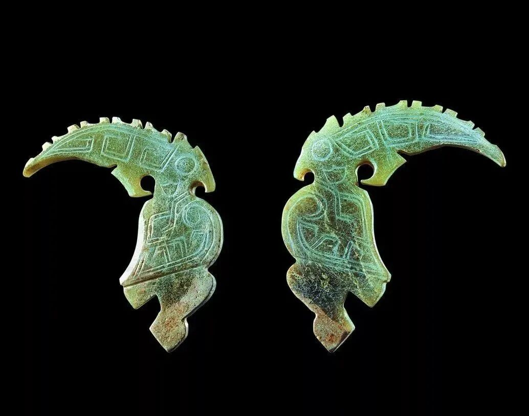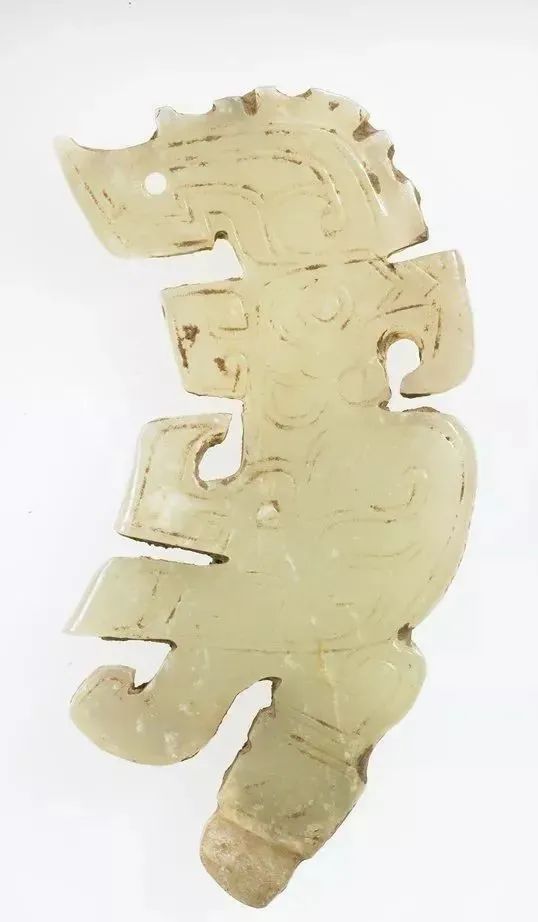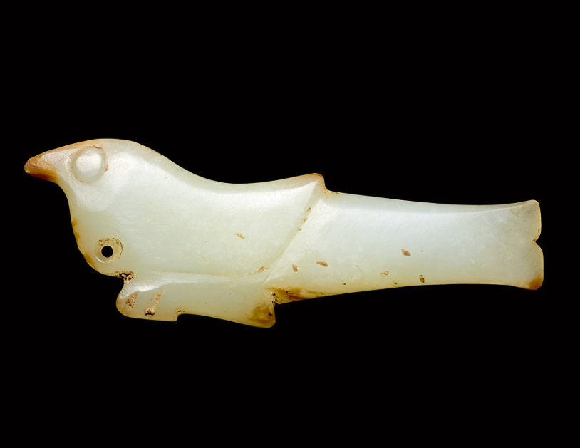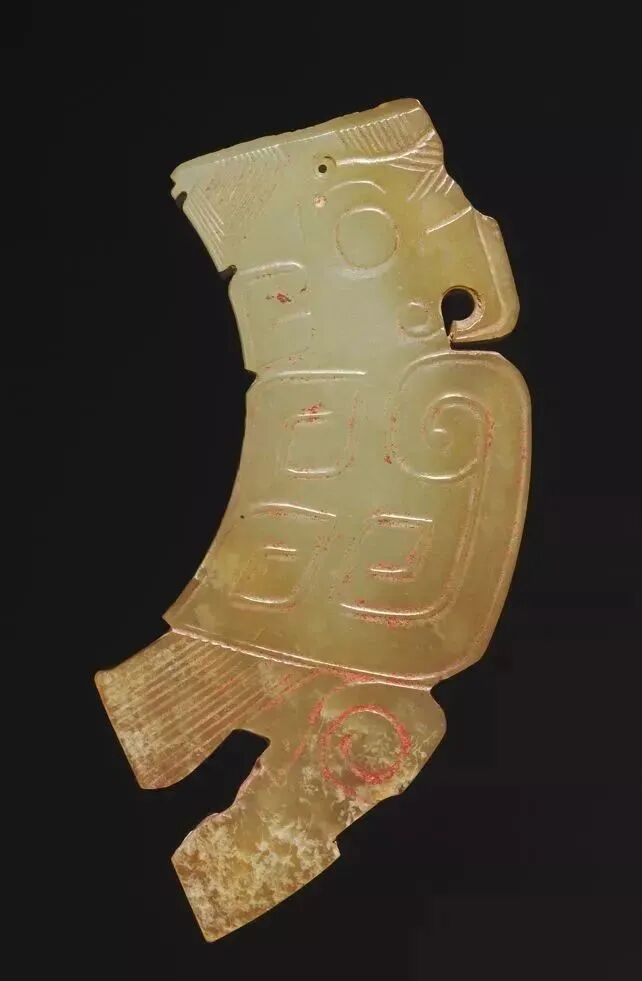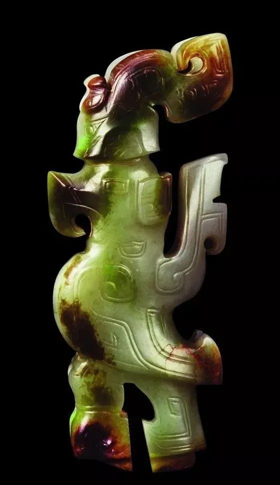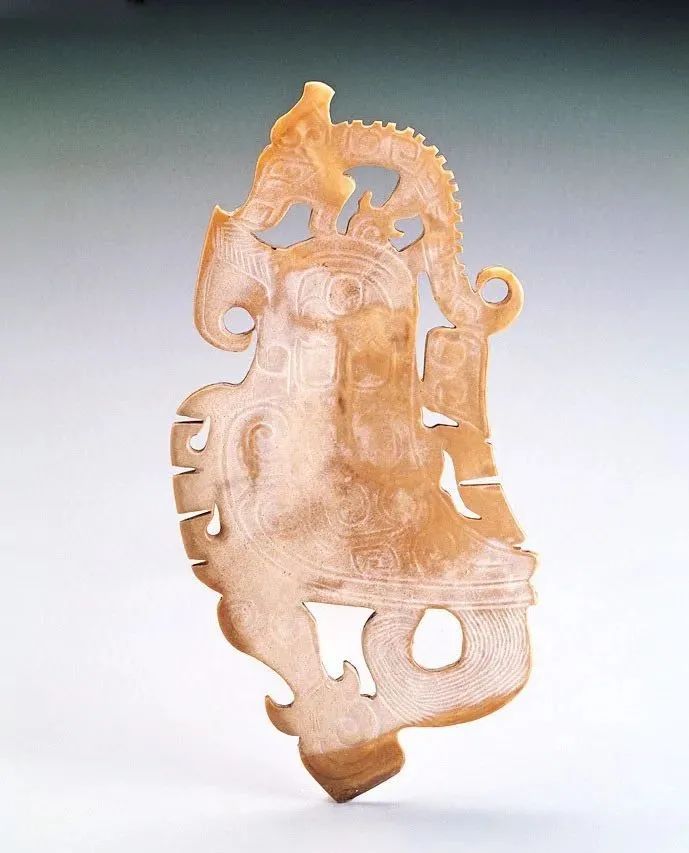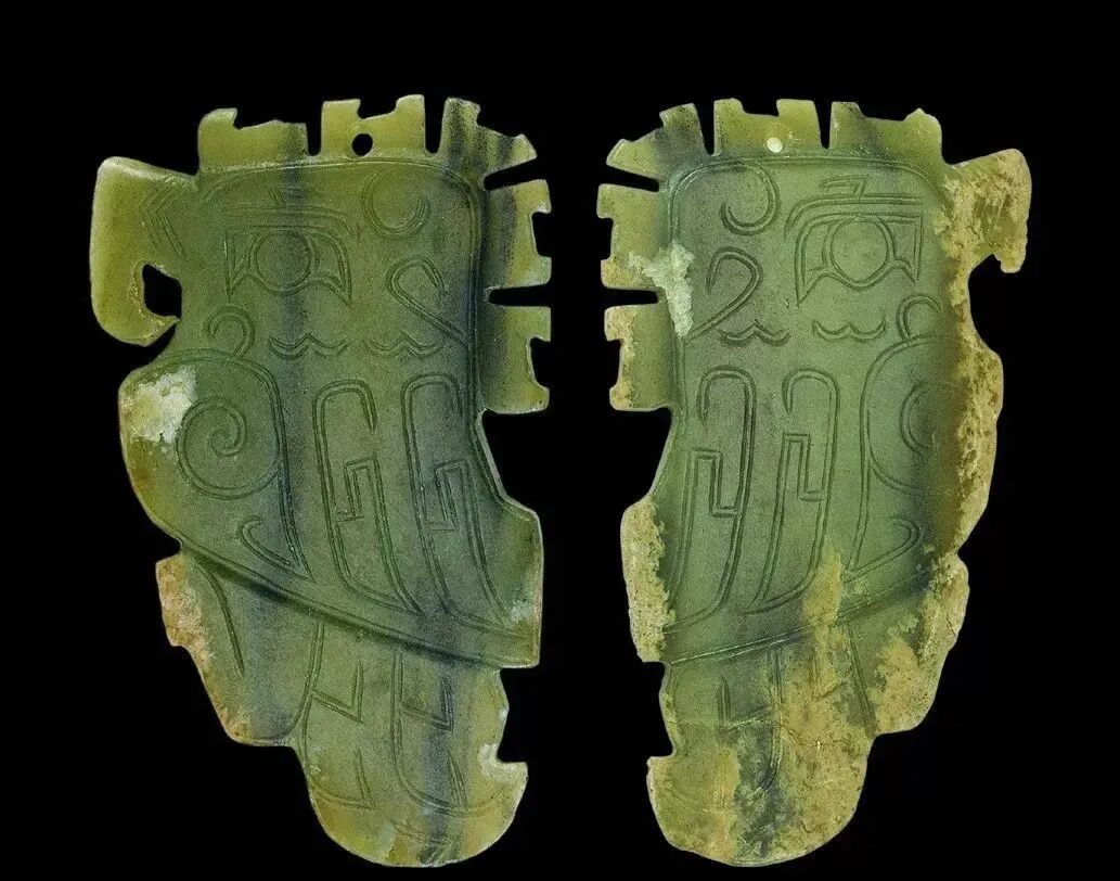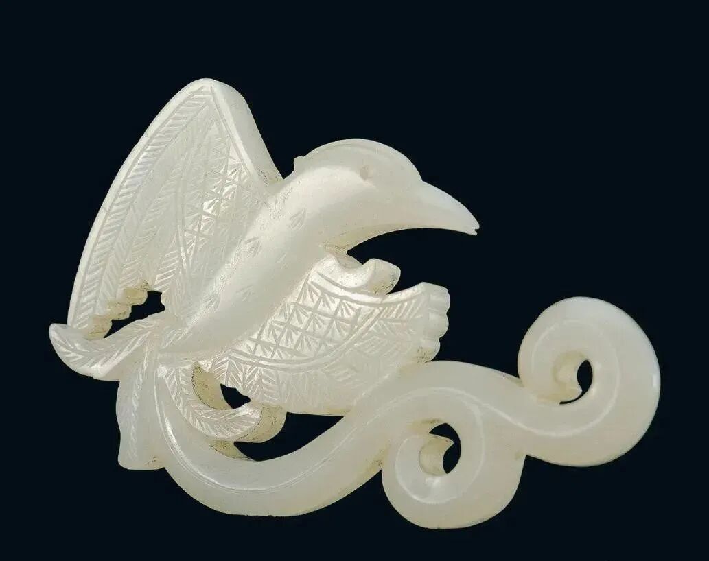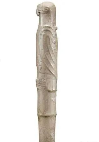 良渚人生活在我国江南地区,可能是“羽人”的后代,他们的部落标徽神人兽面纹中神人头戴羽冠就是一个证据。江南地区靠近东海,在古代神话传说中,东海是鸟的国度,有“人面鸟身”之神,与这个神话传说有密切关联的良渚人,正是崇拜鸟的民族。在良渚文化骨器和玉器中,鸟的形象频频出现,有鸟形立体圆雕,也有雕刻在器物上的鸟纹。良渚人的鸟崇拜主要表现在两个方面:一方面他们认为鸟是负载太阳每日东升西落的“飞船”;另一方面他们认为鸟是天地间的信使,是人类与神灵沟通的媒介。在浙江余杭反山、瑶山的两处良渚文化遗址中,共出土了五件圆雕的玉鸟,这些玉鸟均为扁平器,无凶猛之感,在鸟的腹部均钻有牛鼻状隧孔。其它遗址也出土了类似的器物,其中一件尖喙短尾,呈展翅飞翔状,鸟背中间雕刻有一个鼓状凸起的圆形图案。毫无疑问,这个圆形图案就是太阳的象征。这件玉鸟的出现表明,良渚人是认为太阳的运行是靠鸟的飞翔而实现的。古代先民对鸟的这种认识在文字记载中也有,《山海经·大荒东经》说:“汤谷上有扶木,一日方至,一日方出,皆载于鸟。”意思是说,大荒之中有个山谷叫汤谷,汤谷上有棵树叫扶木,一个太阳刚刚返回,另一个太阳便立即出去,都是由三足鸟驮着。三足鸟为何物?我们现在见到的鸟类只有两足,古人则认为还有一种三足神鸟,其职责就是背负太阳运行。良渚文化出土器物的鸟纹一般都作为辅助纹饰出现,它经常和神人兽面纹组合在一起,一般不占据器物的主要部位。但陈列在上海博物馆的一件鸟纹玉璧和陈列在良渚博物馆的另一件鸟纹玉璧,似乎是例外。这两件玉璧的纹饰几乎一样,自上而下是鸟、杆状物和台阶。专家认为,鸟可以被看作是太阳的化身,中间的杆状物可以看作是《山海经》所说的扶桑树,而下面有台阶的长方体,应该就是祭天的祭台,亦即祭拜太阳的祭台。因刻有鸟纹的良渚文化器物多为祭祀器和陪葬物,因此鸟纹还有另一种意义,即鸟可把人类的愿望传达给神灵,也可把人死后的灵魂带到极乐世界。不难想象,古代先民在日常生活、劳动之余,仰望天空,看到鸟儿在自由地飞翔,很容易联想到借助于鸟可以与天上的神灵沟通,同时,他们也希望死后也借助于鸟把自己带到天国。于是鸟便被想象成神灵驭使的工具,这一点也可以从《山海经》中得到证实,关注公众号:元古玉。《山海经》中就有许多关于神灵乘鸟飞翔的记载。![]()