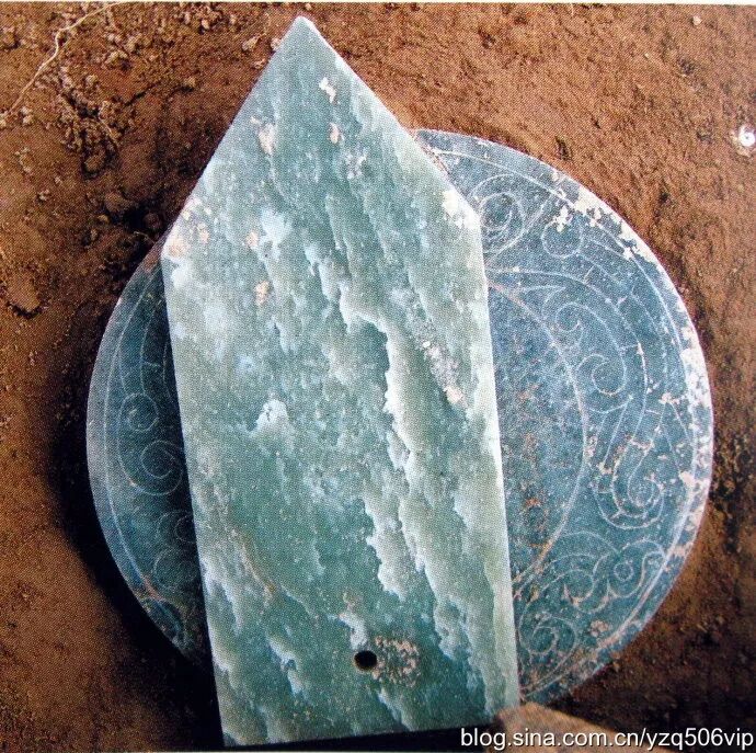 4、鸾亭山祭天玉器有一定的规范与组合,主要为为圭、璧组合。《周礼.春秋.大宗伯》载:“以玉作六器,以礼天、地、四方,以苍璧礼天,以黄琮礼地,以青圭礼东方……”。鸾亭山以圭、璧玉器组合祭天,可能主要是祭东方的天,因为汉天子位于甘肃礼县的东方。