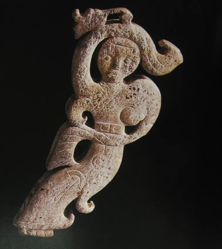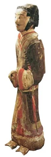 战国至秦所见人像中描刻的佩玉,既有组佩形式,也有单玉佩的形式。组佩形式,基本上是由两三件玉器组合成的小型简约组玉佩。例如,河南洛阳铜加工厂出土的1件战国跽坐状玉人,高7.5厘米,梳髻戴冠,赤足,双手扼于胸前,玉人身上衣服饰有大小方格、三角和条带纹。▌[战国] 跽坐状玉人 高7.5厘米 河南洛阳铜加工厂出土腹前佩有由一环一璜组成的组佩。类似形制的组佩还可见河南信阳楚墓M2出土的一件彩绘漆雕木女俑,关注公众号:古玉虫。在M2共出土有10件木俑,其中一件标本2-147木俑身上绘有玉环在上和玉璜在下,中间饰以配珠构成的组佩。这种简单的样式有别于西周时期流行的多璜组玉佩,故有学者称之为“单璜佩”。文献中亦有相应的描述,《山海经·海外西经》载“夏后启……又手操环,佩玉璜”及《韩诗外传》载“孔子南游适楚,至于阿谷之隧,有处子佩璜而浣者。”佩戴单玉佩的图像见秦始皇陵铜车马坑出土的一号铜车上的车御官俑,高84.4厘米,该俑“腰部佩着青铜剑和佩环……佩环位于俑的腰际右侧,外径3.7厘米,穿径2厘米,上饰白色谷粒纹。”车御官俑的这种佩玉方式,是将绶带一端系在革带上,中间用谷纹玉环衔接,绶带的另一端可能系有印章掖在衣服内侧。▌[秦] 车御官俑 84.4厘米 秦始皇陵铜车马坑出土一号铜车《急就章》颜师古注曰:“绶者受也,所以承受印环也。亦谓之璲”。秦俑身上展现的这种印绶相结合的佩玉式样将所佩玉环作为印绶的衔接,突出了玉佩的实用性,淡化了礼制色彩,更利于军队日常行动和战时作战。此外,美国波士顿美术馆藏有一件据传为洛阳金村大墓中出土的战国青铜灯座。▌[战国] 青铜灯座 高30厘米 传洛阳金村大墓出土 美国波士顿美术馆藏灯座为一立人造型,高30厘米,立人身材敦实,大脸高颧骨,辫发垂于两肩,衣领处有贝壳装饰物,身着短袍,足蹬短靴,具有北方游牧民族特征。人像腰间悬挂一削刀,刀首造型如同玉环,疑是玉首削刀。这可能是所见最早装饰有玉器的匈奴人造型。汉代沿用前朝印绶制以及佩剑作为其衣服制度的重要组成,因此,西汉一朝对西周时期的组玉佩制度并不十分重视。这时的佩玉除了彰显身份外,更多的是起着装饰作用。所见出土汉代玉器、陶俑上体现了当时的佩玉情况。例如,1983年广州南越王墓东侧室B组组佩中的玉舞人佩E135,高4.8厘米、宽2.2厘米,身着交领长袖衣裙,一手垂袖于腰间,一手甩袖过头顶,作漫舞状,头顶至脚底有一孔贯穿。舞人腰间刻有由环、璜及流苏组合的小型组佩。▌[西汉] 组佩中的玉舞人佩E135 高4.8厘米 宽2.2厘米 广州南越王墓东侧室B组1973年南昌东郊14号西汉墓中也出土的一件佩戴组佩的玉舞人14:33,高5.2厘米、宽1.6厘米,造型与南越王墓出土舞人类似,只是组佩略有不同。这件舞人身上所佩戴组佩由1件玉环、1件菱形玉佩及1件冲牙组成。▌[西汉] 玉舞人14:33 高5.2厘米 宽1.6厘米 南昌东郊14号西汉墓出土盱眙东阳汉墓中亦出土有一对相类似的玉舞人,高5.2厘米,宽1.6厘米,尺寸与南昌玉舞人相同,造型上除前额无发饰,关注古玉虫。其他基本相同,这对舞人身上的组佩亦是由1件玉环、1件菱形玉佩及1件冲牙组成。▌[汉] 玉舞人(线描图) 高5.2厘米 宽1.6厘米 盱眙东阳汉墓出土这几件舞人所佩戴的组佩样式,具体事例可参见2002年江苏泗阳陈墩汉墓,在陈墩汉墓M1棺内墓主人腹部至腿部依次排列出土一组由1件玉环、1件韘形佩、1件玉觿组成的组佩。据此推断,南昌东郊14号西汉墓玉舞人14:33、盱眙东阳汉墓玉舞人身上刻绘的菱形玉佩应该就是表示玉韘佩。关于这类组佩,史料中亦有描述。《汉书·隽不疑传》记载西汉武帝时期隽不疑的装束,提到他“冠进贤冠,带櫑具剑,佩环玦,褒衣博带,盛服至门上谒。”其中“环玦”佩就是指这种由玉环与玉韘(此时文献中玉玦应该指玉韘佩)构成的组佩,佩戴这类组佩是隽不疑作为管辖地方教育行政事务的“郡文学”一级官吏盛装打扮。1986年徐州北洞山西汉楚王墓出土的双襟长袍背箭箙俑WK2:20,高50厘米,其右胯绘有一套组玉佩,其“组佩上端以方形玉挂于腰带,下以朱悬六件白玉管和一件白玉璜。”▌[西汉] 双襟长袍背箭箙俑WK2:20 高50厘米 徐州北洞山西汉楚王墓出土以红色绶带穿系组佩,陶俑生动再现了汉代诸侯王麾下高级军官佩戴组佩护卫宫室的情形,在该墓葬俑群中仅此一例。北洞山西汉楚王墓中亦出土多件佩带有玉具剑的陶俑,这里就不再详述了。安徽涡阳石弓山崖墓出土1件青玉人俑,高5.75厘米、宽3.23厘米,人俑头戴冠帽,足蹬履,面部五官以阴线刻出,身着交领宽袖着地长袍,腹前系有一由绶带系挂的玉璧。▌[西汉] 玉舞人14:33 高5.2厘米 宽1.6厘米 南昌东郊14号西汉墓出土汉人佩戴单玉佩的描写见《汉书·武五子传》,其中有段张敞关于汉废帝刘贺被贬回昌邑老家之后的形象描述,“臣敞入视居处状,故王年二十六七,为人青黑色,小目,鼻末锐卑,少须眉,身体长大,疾痿,行步不便。衣短衣大绔,冠惠文冠,佩玉环,簪笔持牍趋谒”。这里落魄王侯刘贺,接见前来视察的山阳太守张敞时的装束亦只是佩戴一件玉环。目前所见战汉佩玉人像由于其所代表的都是诸如舞姬、侍从、小臣之类的人物,故总体来说佩玉等级不高,形制相对简约,但也印证了文献对于古人佩玉的记载以及解决一些中小型墓葬考古中出土的佩玉排序组合问题。同时,这