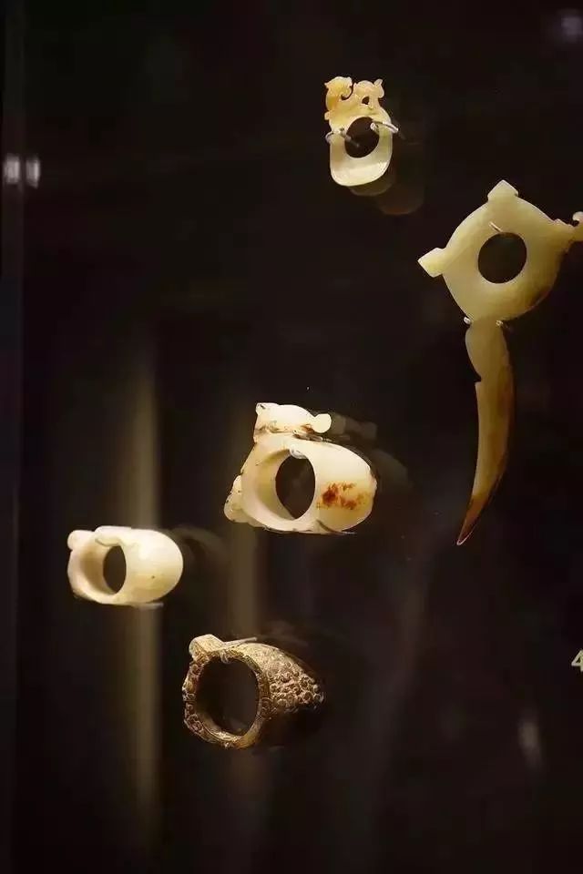 韘是扳指的前身,扳指通常是弓箭手戴于勾弦的手指,用以扣住弓弦。随后,扳指变得越来越精致,其实用功能慢慢减弱而礼仪功用慢慢突出。这一点从扳指上越来越精致的垂饰就可以知道。