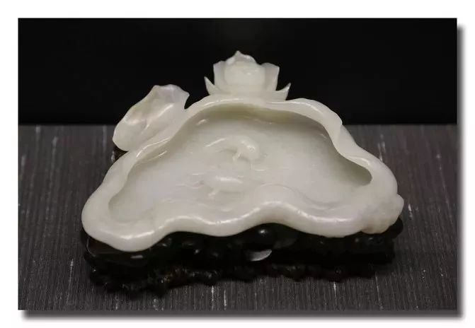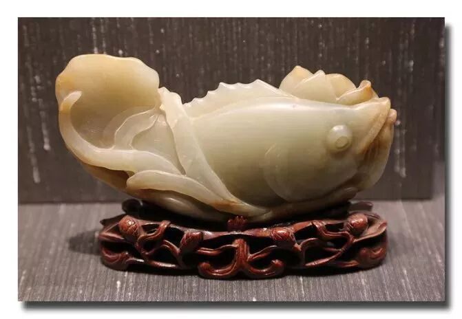 该玉雕的形状为一条鲤鱼在莲花、莲叶间游动。汉语中,“鱼”和代表充裕的“余”发音相同,因此,鱼成了富裕充足的象征。该玉器由苏欣洁(Yankit So Martion)的亲友提供,作为对她的纪念。苏欣洁是中国食品历史学家、作家,也是大英博物馆的支持者。