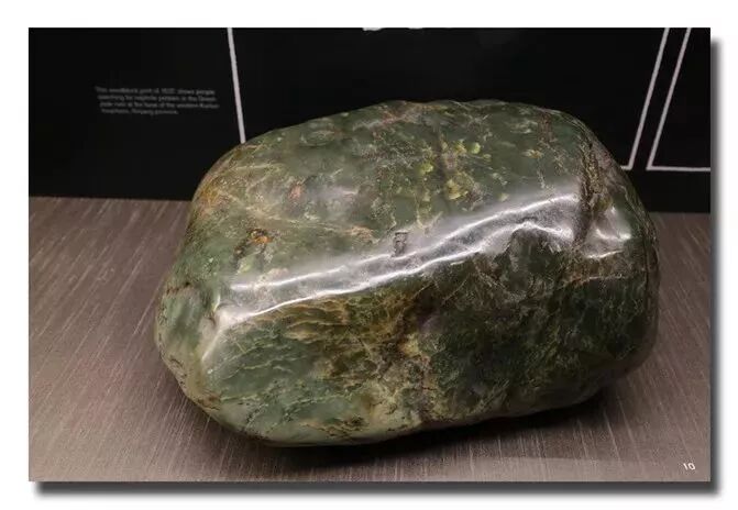 最后,大英博物馆还放了一块原石,似乎在提醒大家,看好了,这才是真正的玉。