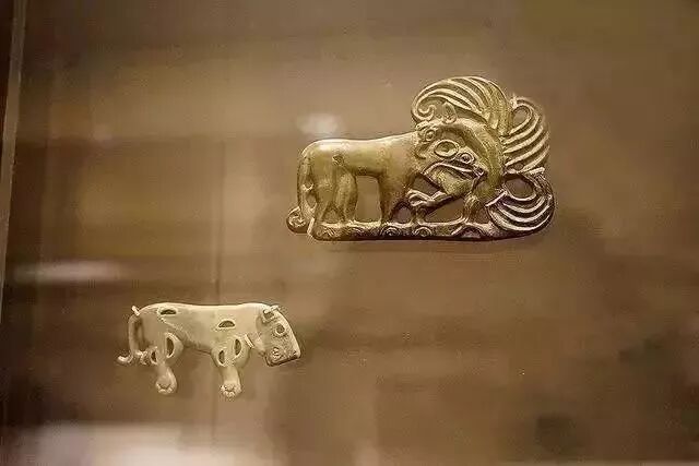 自公元前8世纪以来,中国鼓励城市与西部及西北部地区的游牧民族进行两种文化间的贸易往来。游牧民族佩戴的带板,起初是用黄金和青铜制作的。中原人民似乎是仿制了这种大的长方形带板。中、西亚地区民族的人民同样也将战争中的动物图形运用在其中,并且着重刻画动物的轮廓而不是正面形象。这两种想法都被中原人民所采纳利用。