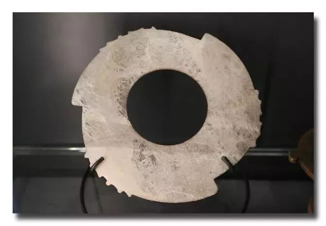 长了牙的玉璧,俗称“玉牙璧”,像机器中的一个齿轮。大名“玉璇玑”。《尚书·舜典》“在璇玑玉衡,以齐七政。”西汉孔安国解释:“在,察也;璇,美玉也;玑衡,王者正天文之器,可运转者。”清末吴大澄怀疑它是浑天仪中所用之机轮。可是,这样的浑天仪在哪里呢?出土的都是孤件,边上都没有浑天仪。