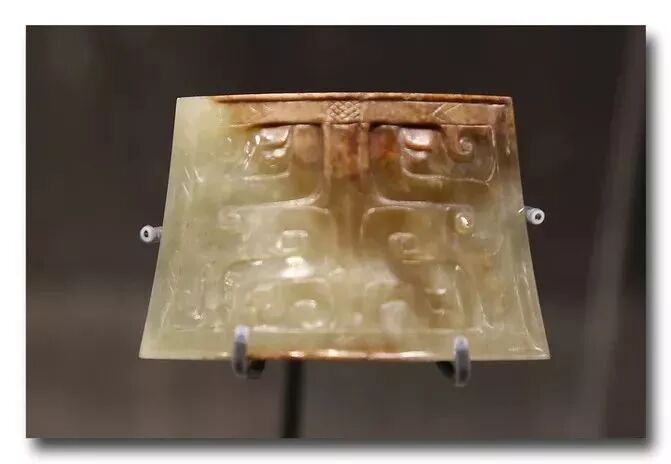 玉面神人像。眼睛突出,剔地阳纹。雕刻工艺水平更高。应该是石家河文化的。距今4600年-4000年。上海博物馆的镇馆之宝“神人”也是石家河文化的。