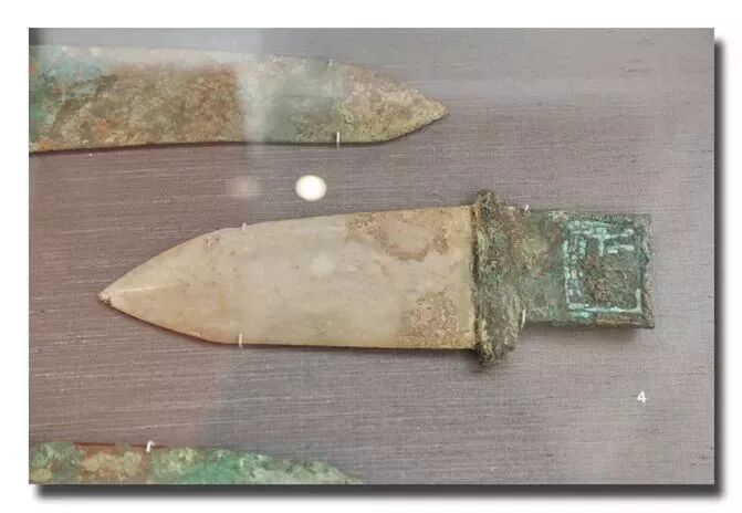 在剑上装以玉配饰,可以将金属武器的力量与玉石的能量结合在一起,帮助抵御死亡与腐朽。配饰包括剑首、剑格及剑珌,保护剑鞘不被剑所刺破,同时将剑鞘固定在腰带上。