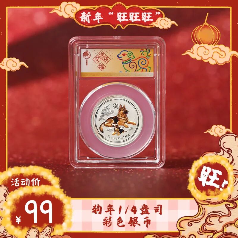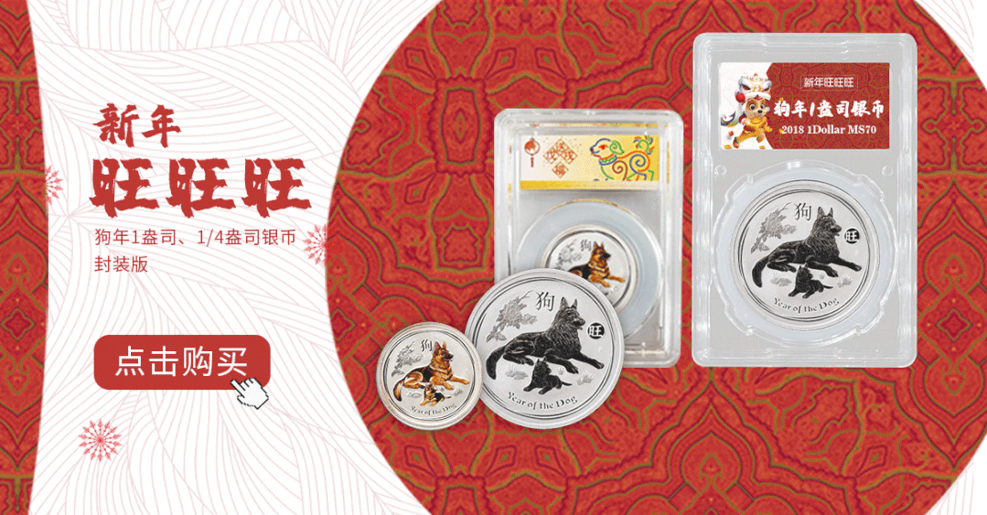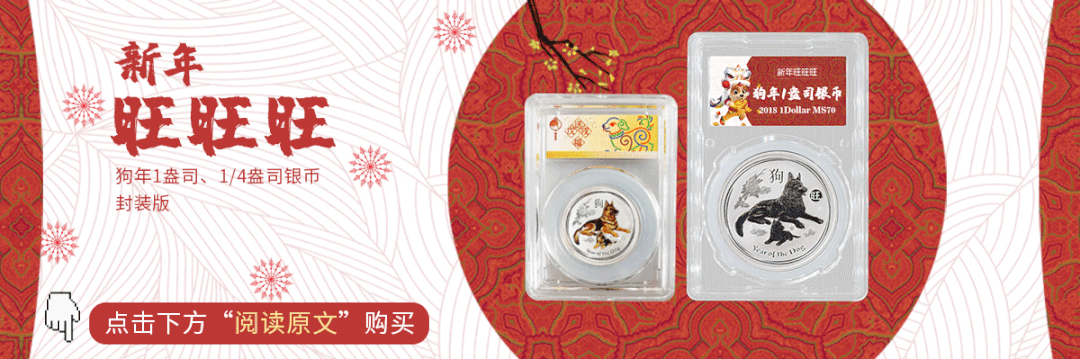 两枚银币上都有标注珀斯铸币局“P”标记,英文的“狗年”与中文的“狗”字相对照,让整枚纪念币主题更加凸显。2015年1/4盎司福字银币,如今已经要1000多元才能买到。而同样1/4盎司规格的新年旺旺纪念银币,只要99元/枚,还是封装版,非常非常划算!因为是2018年发行纪念币,沉淀也比较充分,这次我拿到的数量不多,建议大家趁早下手!新的一年,快给亲朋好友送旺吧!