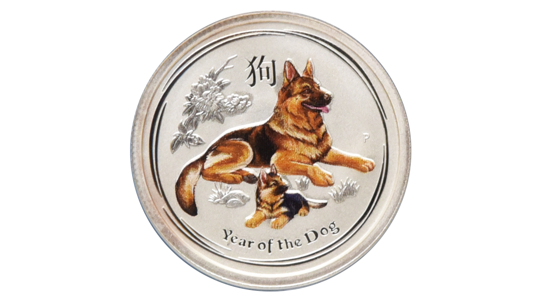 1盎司狗年纪念币的背面图案与正面图案一样,采用主要图案镜面的工艺,独特好看。