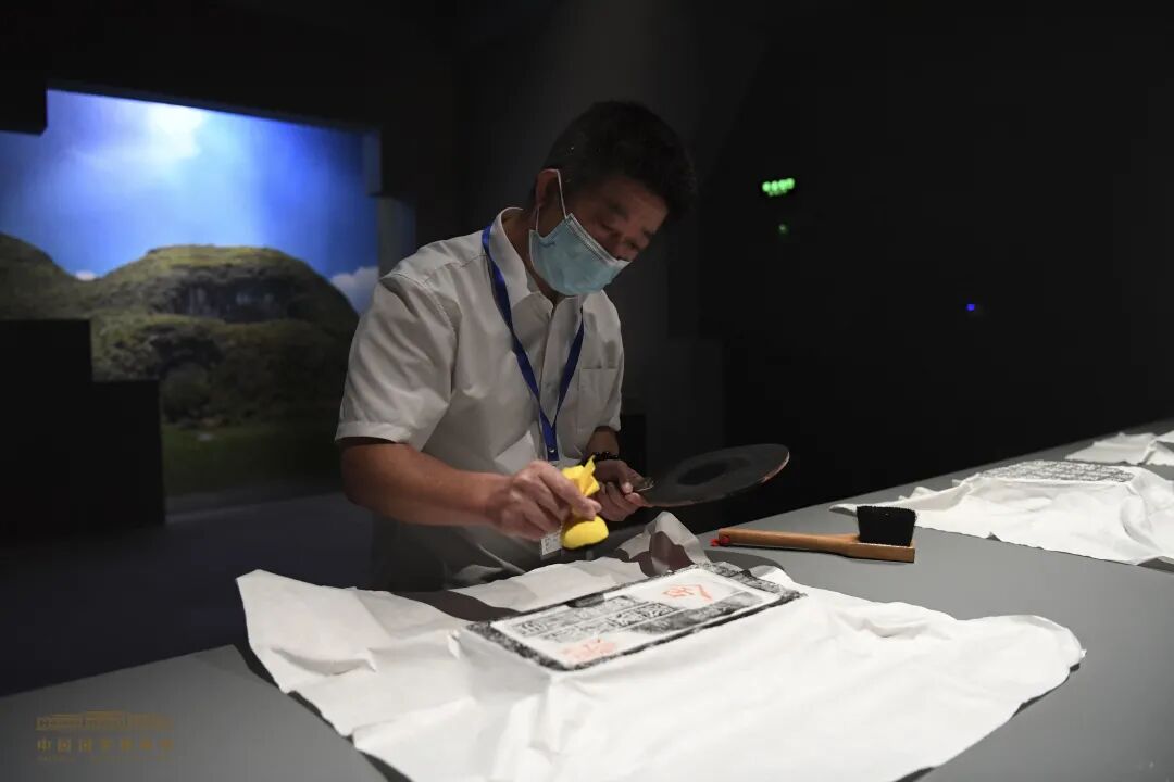 中秋假期,杨老师每天都会到展厅体验区演示拓片过程。感兴趣的小伙伴不要错过!