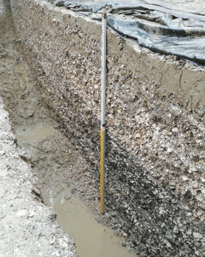 浙江余姚井头山遗址是浙江省和长三角地区首个贝丘遗址,图为井头山遗址厚达两米的贝壳堆积文化层(图自中国考古网)