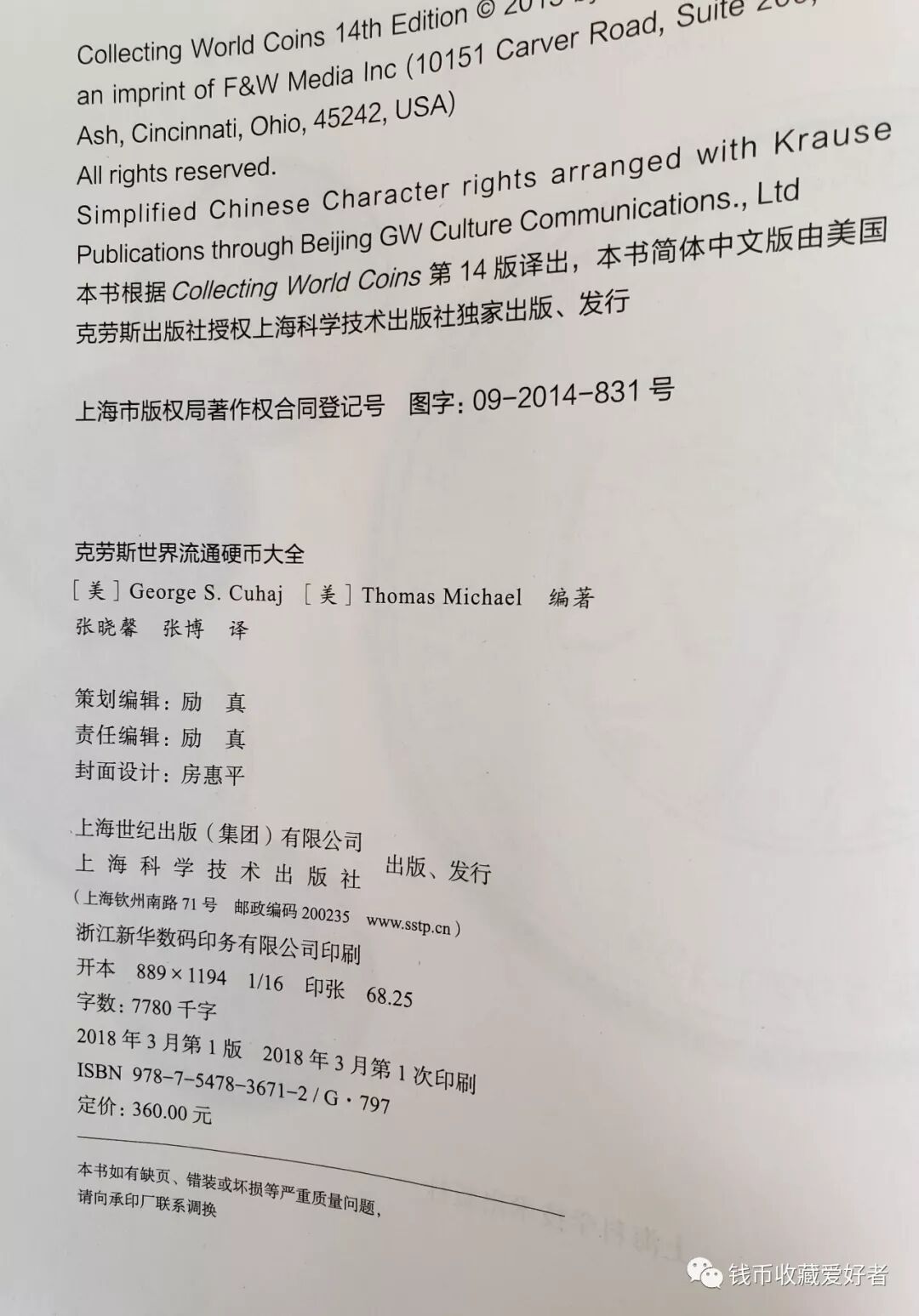 这本图录是上海科学出版社出版的《克劳斯世界流通硬币大全》,由George S Cuhaj和Thomas Michael编写。