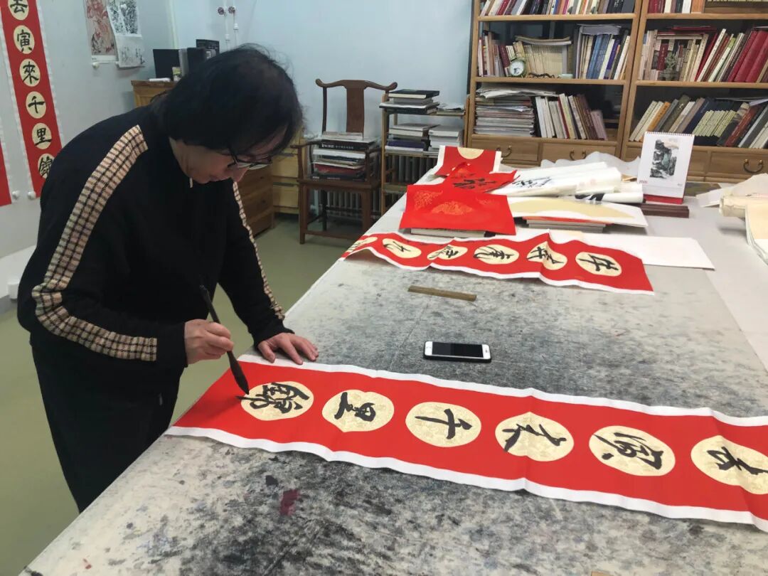 开展当天,许多艺术家朋友不畏严寒,相聚在荣宝斋,品茗谈艺,并纷纷挥毫泼墨,书写春联,以此表达迎春纳福、祈家国吉祥、祝冬奥举办成功的喜悦心情。