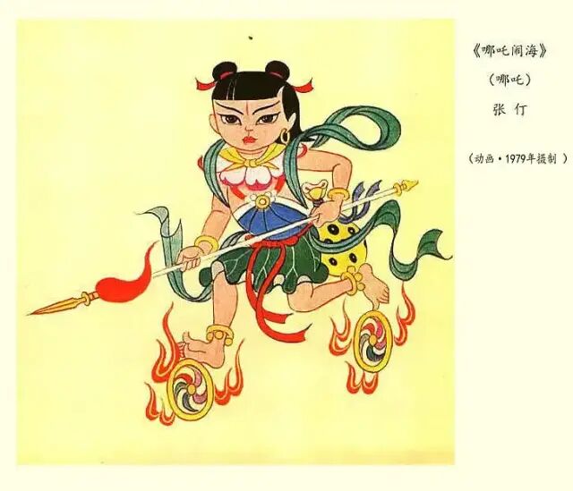 随着影片开场悠扬的编钟国乐,一个浓眉大眼、神采飞扬的小娃娃从莲花中孕育出来。脚踏风火轮,大闹东海龙宫,剔骨削肉,不畏强暴自刎的哪吒,迅速成为全国上下家喻户晓的形象,乃至一代人的文化偶像。而这个哪吒的形象,正是出自美术大师张仃之笔。更鲜为人知的是,张仃的创作灵感源于儿子张郎郎幼时的照片。小哪吒背后的创作原型,便是张郎郎童年的样貌。