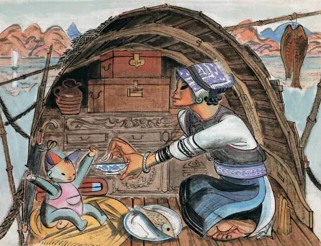 1978年张仃出任《哪吒闹海》的美术总设计,这是他艺术生涯的又一巅峰,贡献出鲜艳生动的人物和极富中国特色的山水背景。落于首都机场的“20世纪敦煌”大型壁画群落,出自张仃之笔的《哪吒闹海》是其中最瞩目的部分。