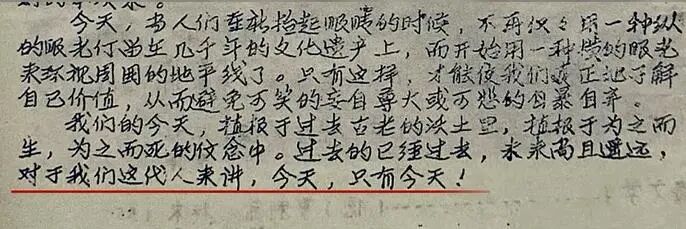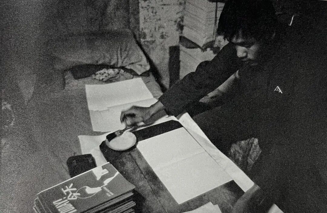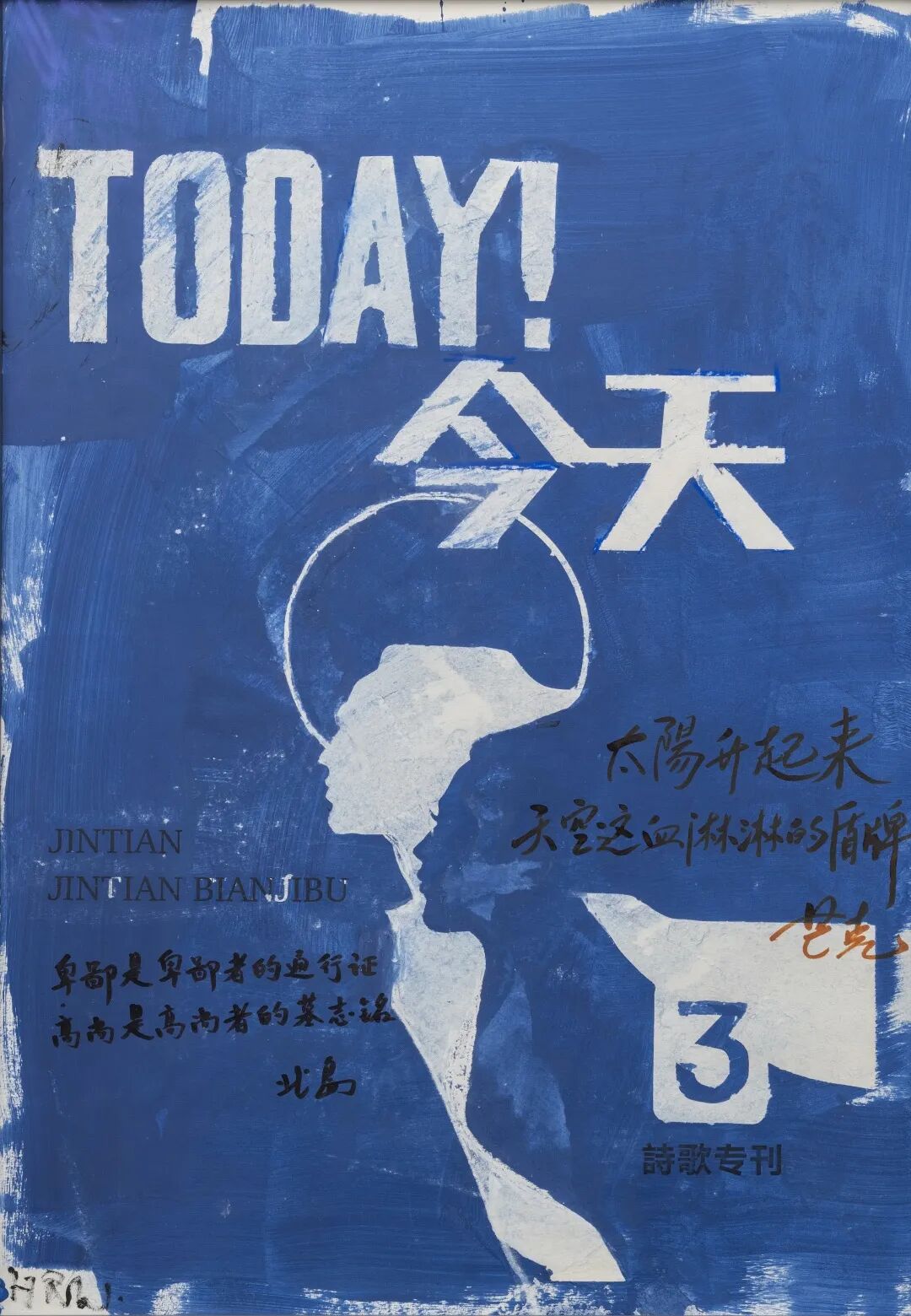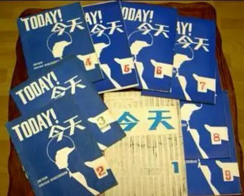 1978年12月23日,北京亮马河畔的一处农家民房里,7个年轻人围着一台油印机忙活了三天三夜。那时候的亮马河属于“三不管”地带,《今天》就在这个“盲点”上诞生了。《今天》杂志始终由编辑部的年轻人们手工制作(刘香成摄影)杂志的第一期完全是手刻蜡版,直到开工前最后一分钟,黄锐才不知从何处弄回一台又破又旧的油印机。而纸张则是靠在造纸厂工作的芒克和在工厂宣传科打杂的黄锐每天积攒拼凑而来。当然这也造成了《今天》创刊号的纸张颜色各不相同,算是一种时代印记吧!《今天》编辑部 刚成立时共7人,这其中有4人参与创刊完成所有装订,吃了整整三天炸酱面的编辑部决定出去庆祝一下。在东四十条一间餐馆里,大家为《今天》举杯,商量着要把创刊号贴满全北京!北岛、芒克、陆焕兴自告奋勇承担了这个任务。大伙儿觉得此行凶多吉少,出发前不由燃生一丝悲壮,三人特意涂改了自行车的号牌,以避免被跟踪。幸运的是最终并无惊险发生,于是张贴完杂志的他们混入围观的人群,悄悄观察大家的反应。很难描述当时这本杂志给人们带来了怎样的震动。那些在地下运转多年的文字,突然现身于世。大家读到了“卑鄙是卑鄙者的通行证,高尚是高尚者的墓志铭”;读到了“我必须是你近旁的一株木棉,作为树的形象和你站在一起”……很多人开始在杂志末尾的空白处留言,甚至留下地址与姓名。《今天》就这样拥有了最初的读者甚至志愿者。杂志的首期封面是由画家彭刚绘制,黄锐设计的,被栅栏围住的“今天”。但由于蜡版刻印出来的效果不好,于是从第二期开始,换成了黄锐设计的蓝白封面,画面简洁而醒目,取名“希望的今天”。这个设计被固定下来,成为《今天》的读者们最为熟悉的视觉符号。也是自第二期,《今天》面向全国范围征求订户,带着油墨气味的蓝白封面刊物开始被寄往五湖四海,每期1000册。编辑部搬到了东四14条76号。一些重要的作者开始向《今天》靠拢,江河、甘铁生、杨炼等等。顾城被姐姐顾乡领来,紧张得像个孩子,抱着一摞诗稿,开始以笔名“古城”在《今天》上发表作品。诗歌之外,还有史铁生的小说,阿城的文学评论与画稿。从七十年代起形成的各个文学沙龙,也逐渐汇聚到《今天》的周围。
