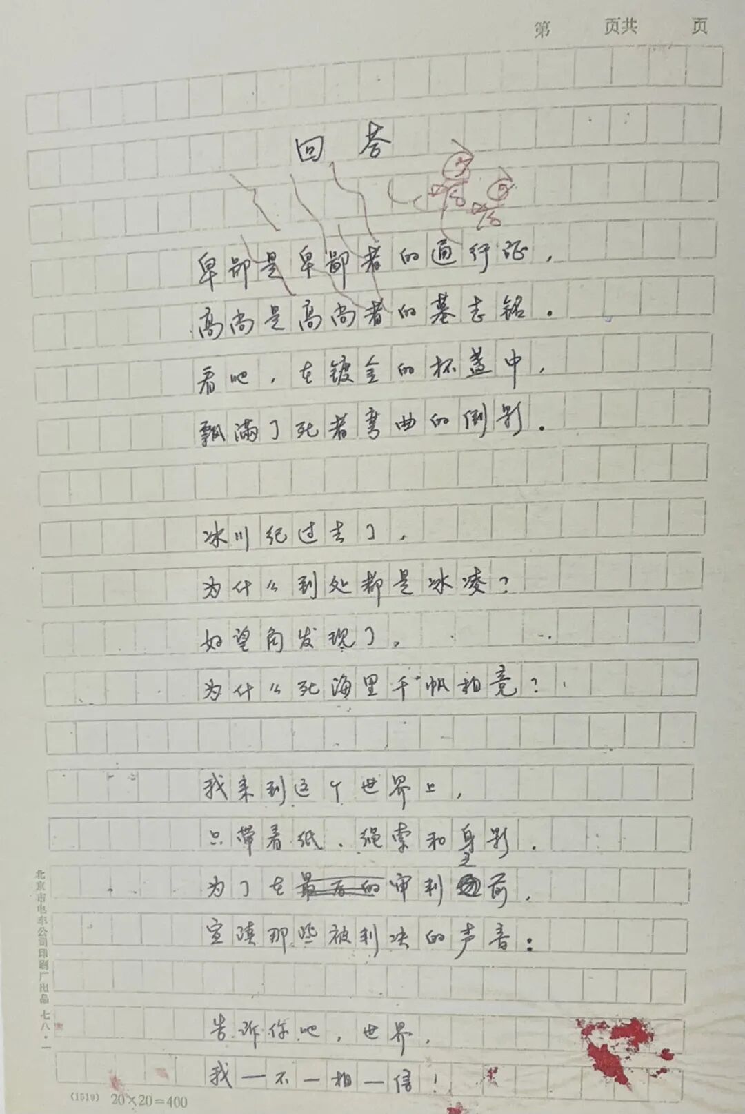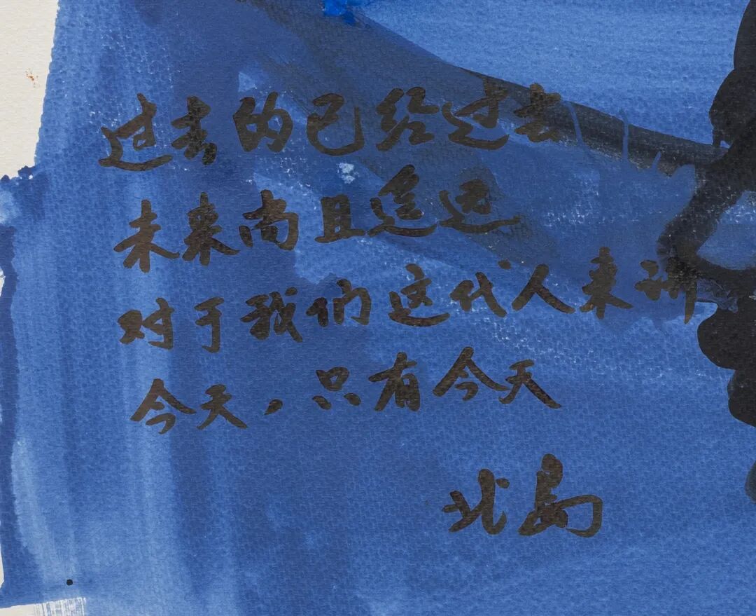 北岛与芒克分别题写了《回答》与《天空》中的诗句,这些文字曾刊登在《今天》的创刊号上而广为流传。